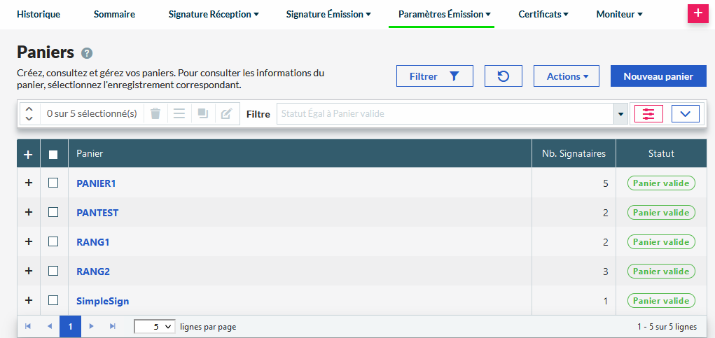 The Signatory group sub-menu in the Sending parameters menu allows you to manage your signatory groups.