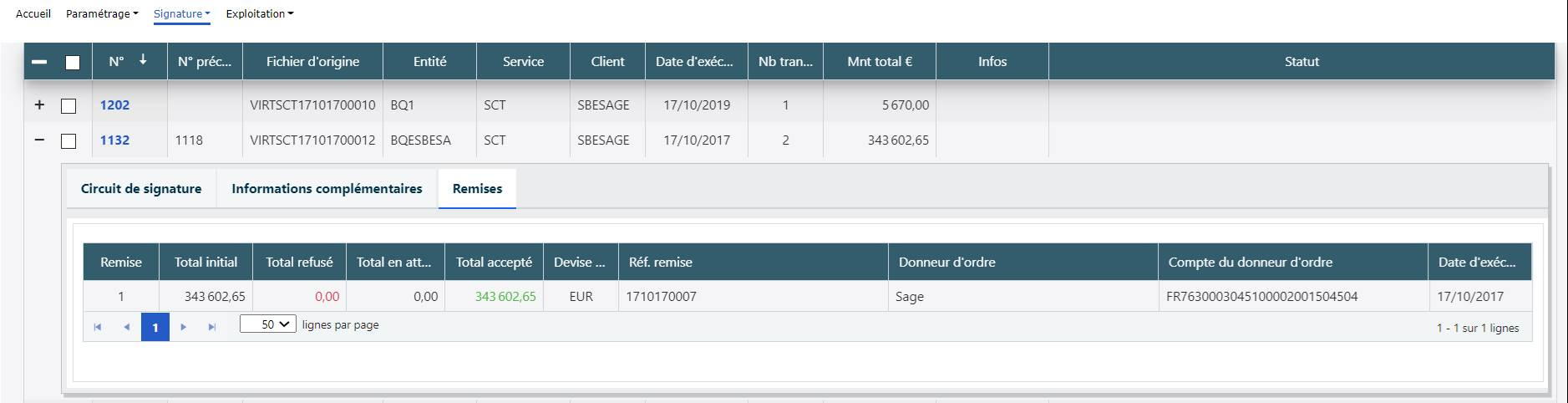 Pour le format Pain 002 (Payment Status Report), le module Relevés Bancaires vous permet de visualiser :