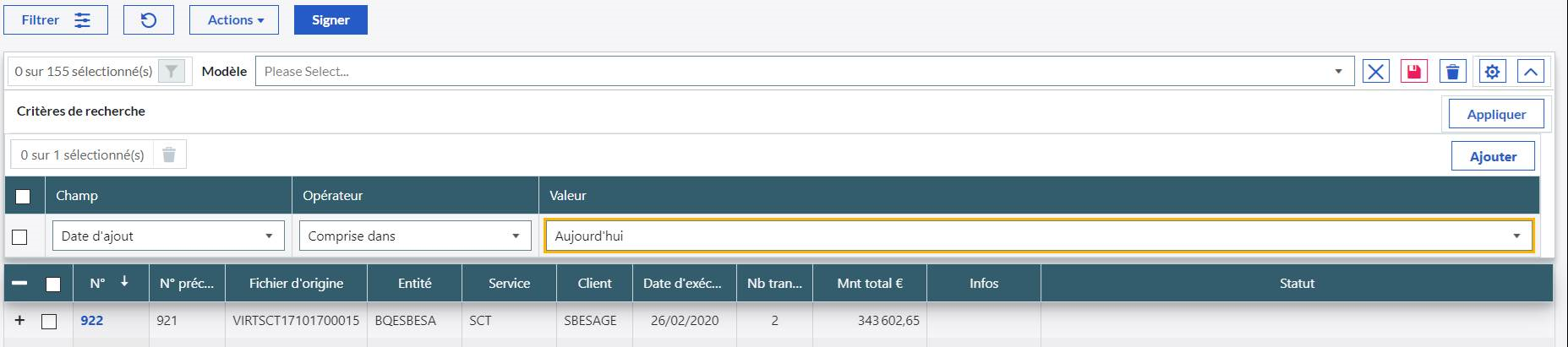 Vous pouvez également sélectionner vos critères de recherche et créer vos propres modèles d’affichage grâce à l’icône d’enregistrement
