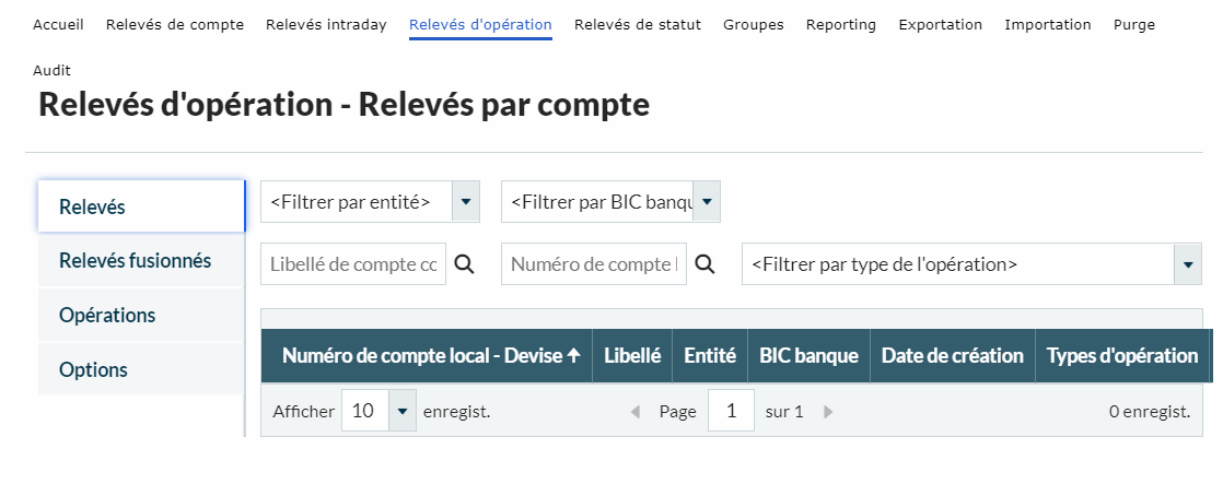 Les relevés d’opération bénéficient des fonctionnalités d’importation, d’exportation, d’audit et de purge communes à tous les types de relevés.