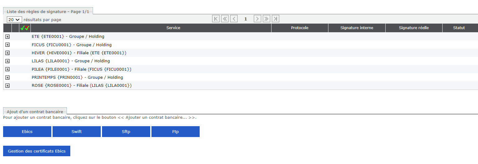 L'Administration fonctionnelle supporte les contrats utilisant les protocoles SWIFT, FTP et SFTP (en plus d'EBICS).