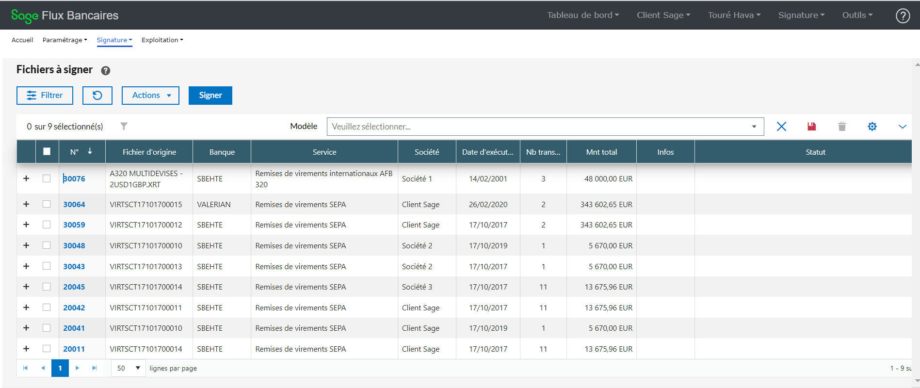 Le module Supervision présente la liste des flux en attente d'une action ou d'une confirmation, avec possibilité de filtrage sur tous les flux.